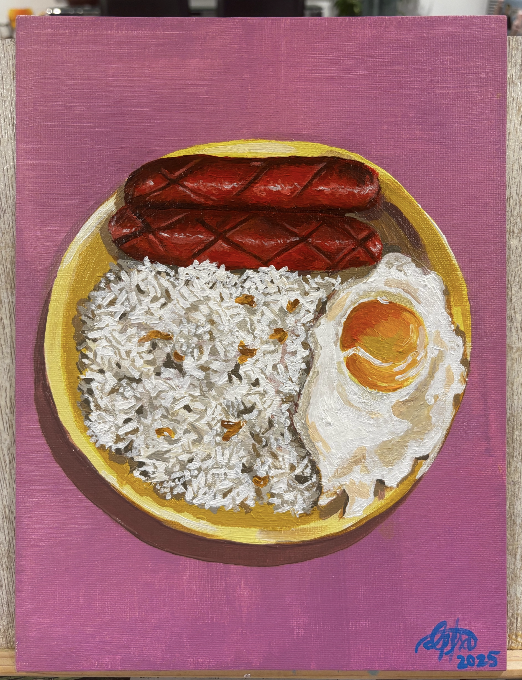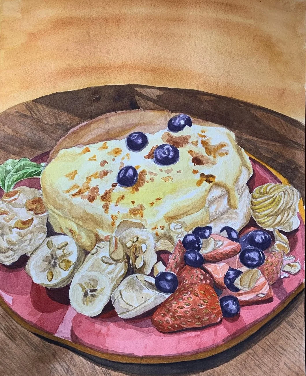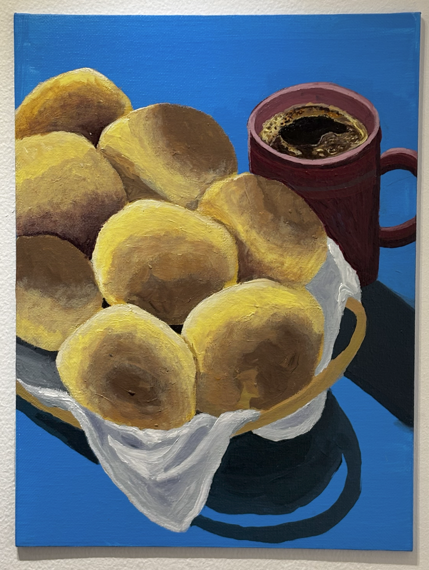 My current preferred painting medium, acrylic, caught my favour due to the excitement of trying to capture the essence of objects or people before the paint dried. I also enjoy layering, which creates unique textures. With acrylic paint, I often like to paint food, objects, or landscapes.